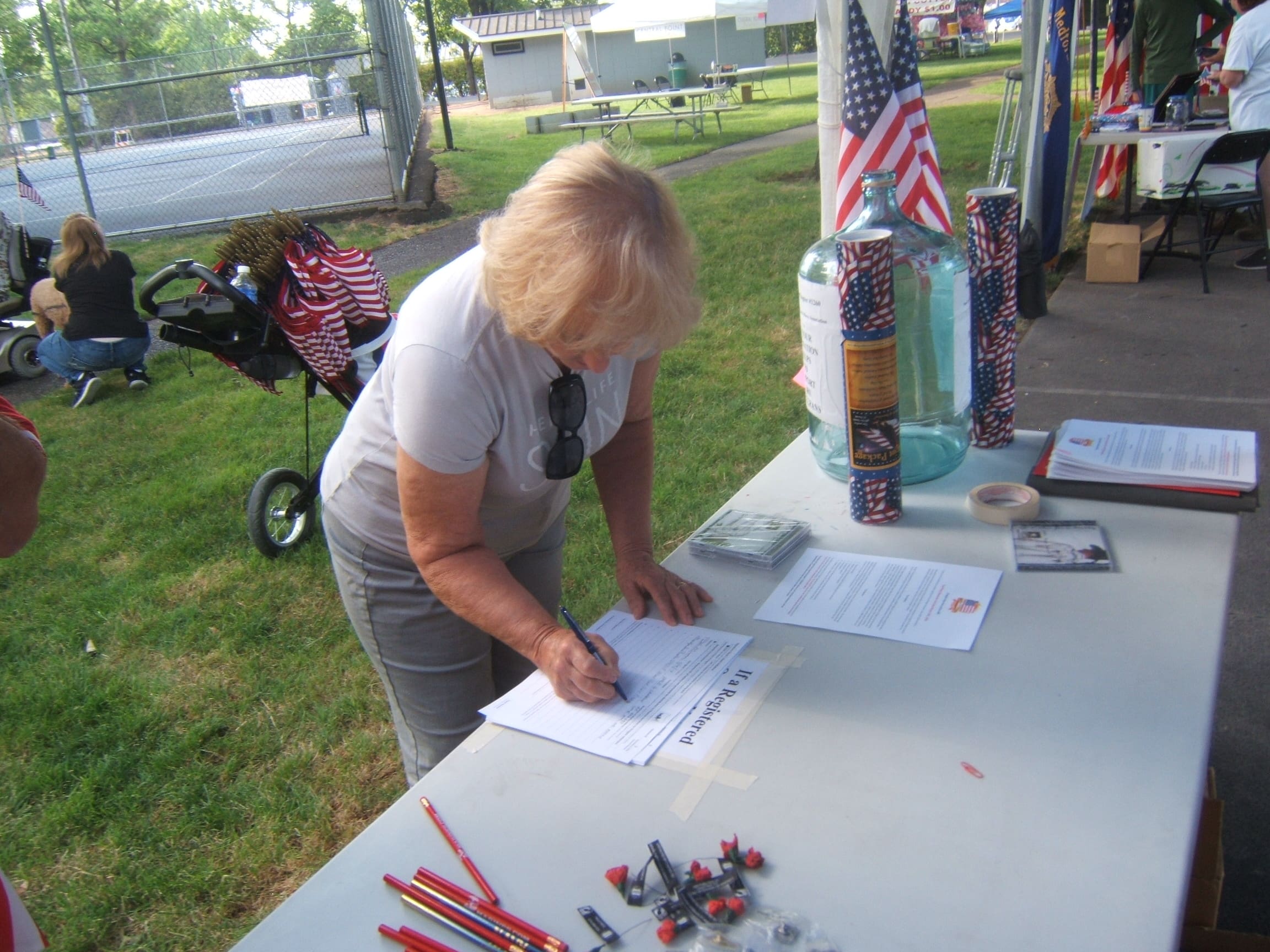 A patriot signing the petition to set aside lottery funds for veteran’s programs.