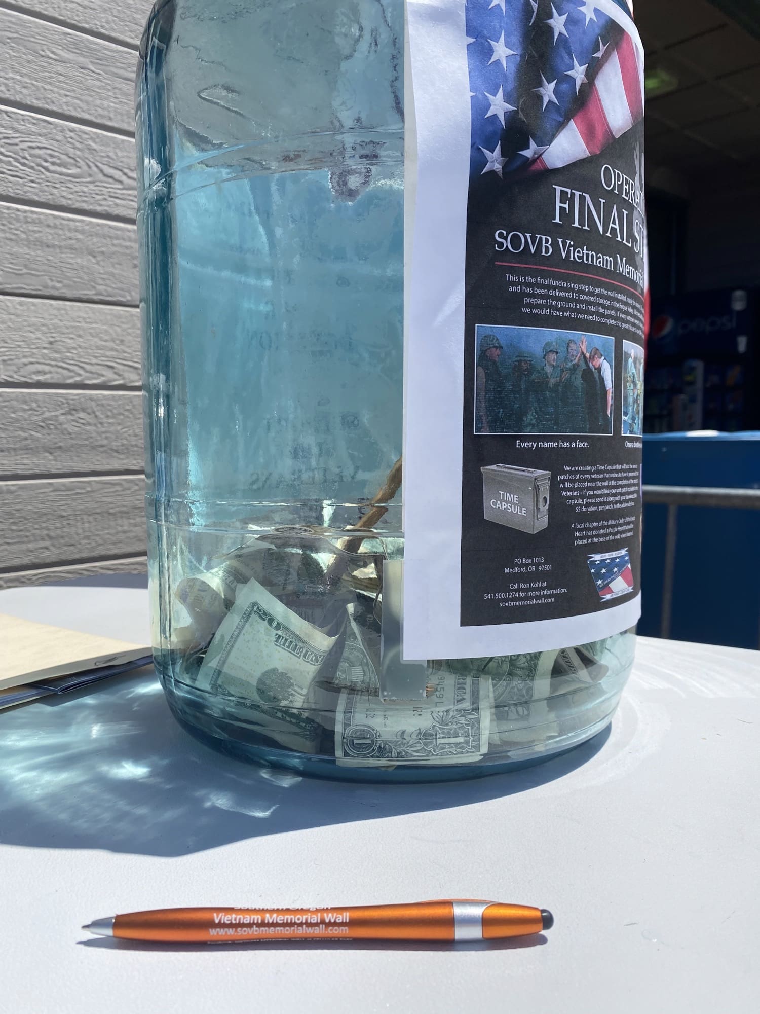 The jug used to collect funds for the Vietnam Wall as part of Operation Final Step
